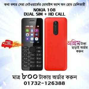 নোকিয়া ১০৮ দুই সিমের মোবাইল এবং এতে মেমোরী কার্ড ব্যবহার করা যায়। এই মোবাইল এক চার্জে ৩ দিন ব্যাকাপ যায়। রাফ ব্যবহার এর জন্য খুব ভাল একটি মোবাইল এটি। অর্ডার করুন, ৬৪ জেলায় মাত্র ৩ দিনের মধ্য ক্যাশ অন হোম ডেলিভারীতে পাবেন।