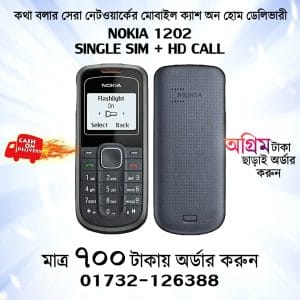 নোকিয়া ১২০২ এক সিমের একটি মোবাইল। এই মোবাইল এর চার্জ বেকাপ ২ থেকে ৩ দিন পর্যন্ত থাকে। Nokia 1202 মোবাইল এ ইমোজি দিয়ে নাম্বার সেভ করা যায়। এক কথায় খুব অসাধারন এক ছোট বার ফোন যা সকলের নজর কাড়বে।