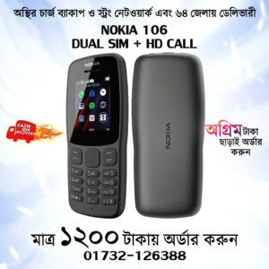 নোকিয়া ১০৬ দুই সিমের একটি মোবাইল, কথা বলার জন্য খুব ভালো মানের এটি ফিচার ফোন। রাফ ইউজ এবং সেকেন্ডারী ফোন হিসেবে অনেক ভালো, অর্ডার করুন এবং সারা বাংলাদেশে তিন দিনের মধ্য হোম ডেলিভারী উপভোগ করুন।