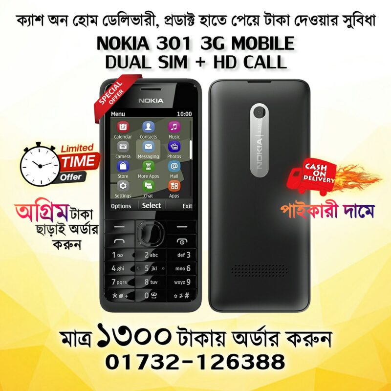 Nokia 301 Dual Sim 3G Button Mobile (Refurbished)